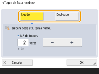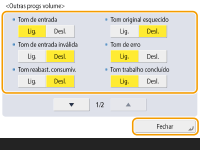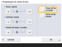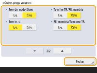 Mesmo que o tom de receção seja programado como <Desligado>, o tom de receção será emitido quando chegar um fax durante o modo Sleep se o consumo de energia durante o modo Sleep estiver programado como baixo. <Utilização de energia no modo Sleep>