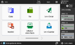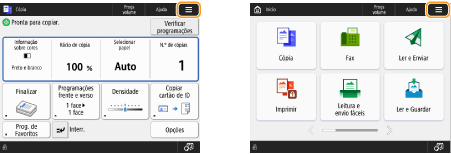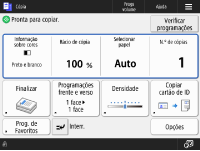No ecrã <Início>, carregue nos botões de função para apresentar o ecrã das Funções básicas onde pode aceder a funções básicas, tais como copiar, ler e enviar faxes. Embora a apresentação e os itens de programação no ecrã das funcionalidades básicas sejam diferentes consoante as funções, é possível alterar as programações de acordo com as suas necessidades. Personalizar o ecrã das funções básicas