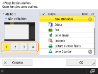 Pode criar um botão de atalho para as funções no ecrã <Início>. Utilize este botão para aceder a uma função diferente sem voltar ao ecrã <Início>. Para criar um atalho, inicie sessão com privilégios de administrador. Iniciar sessão na máquina