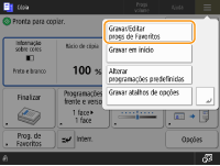 Carregue em <Prog. de Favoritos> no ecrã das funções básicas de cópia. Ecrã das funções básicas de cópia