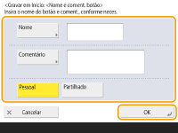 Para gravar um botão Pessoal, tem de iniciar sessão com a gestão de autenticação pessoal. Configurar as programações de gestão de autenticação pessoal