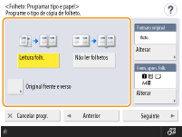 Ao copiar um original que já se encontra no formato de folheto impresso, por exemplo, na máquina através da cópia de folhetos, carregue em <Não ler folhetos>.