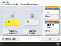 Carregar em <Alterar> em <Formato orig.> permite selecionar o formato do original, e carregar em <Alterar> em <Formato de papel> permite selecionar o formato de papel.