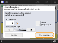 Carregue em <Inic. impressão> para imprimir o número de cópias especificado. Se tiver selecionado <Todas as páginas> no passo 5, será impresso o número de cópias menos uma. Se tiver selecionado <Páginas especificadas> no passo 5, será impresso o número total de cópias.