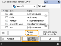 A disponibilidade do livro de endereços remoto/das teclas de marcação por memórias telefónicas diretas depende do estado das programações de informação sobre o administrador do sistema para a máquina servidor e para a máquina cliente, como se mostra a seguir.