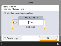 Introduza a hora de envio e carregue em <OK>.