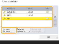 Se pretender utilizar uma chave e certificado adquiridos junto de uma autoridade de certificação (CA), registe a chave e o certificado antes de realizar o procedimento abaixo. Gravar uma chave e certificado