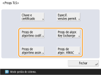 Se definir <Formatar método codificação para FIPS 140> para <Ligado>, pode fazer com que o método de codificação para comunicação TLS respeite as FIPS (Federal Information Processing Standards) 140-2 aprovadas pelo governo dos Estados Unidos. <Formatar método codificação para FIPS 140>