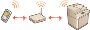 Ligue diretamente um dispositivo móvel à máquina sem fios, sem ser necessário utilizar a LAN sem fios. É possível ligar imediatamente à máquina de forma sem fios, mesmo fora de um ambiente de LAN sem fios. Ligação direta