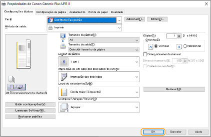 Especifique as programações de impressão conforme necessário e clique em [OK].