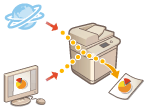 Utilizando a Remote UI (Interface Remota), é possível imprimir os ficheiros gravados num computador ou numa rede diretamente a partir da máquina sem utilizar o controlador da impressora. Não precisa de abrir os ficheiros no computador para a impressão.