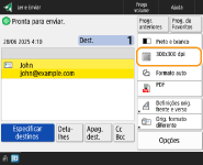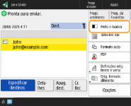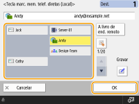 Para verificar o número total de destinos especificadosO número total de destinos especificados é apresentado na parte superior direita do ecrã. Isto permite-lhe confirmar se o número de destinos está correto antes do envio.