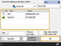 Pode utilizar apenas livros de endereços locais. Não é possível utilizar livros de endereços remotos.