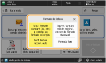 Quando colocar um original de formato A4, carregue em <Opções> no ecrã das funções básicas de leitura