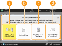 Se quiser ler cada uma das faces dos originais frente e verso colocados no vidro de exposição, especifique as programações <Cópia cont. de trabalhos>. Enviar/gravar documentos lidos separadamente em conjunto (Cópia contínua de trabalhos)