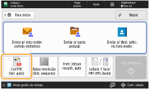 (Parar) quando existirem vários trabalhos de envio, para apresentar o ecrã e selecionar o trabalho a cancelar. Se o trabalho de envio que pretende cancelar não for apresentado, carregue em <Verif. outros trabalhos> para apresentar <Trbs envio>. Selecione o trabalho que pretende cancelar e carregue em <Cancelar>.Para verificar os estados de documentos enviados/gravadosNo ecrã <Contr. estado>, pode verificar os estados dos documentos enviados/gravados. Este ecrã permite enviar/gravar documentos novamente ou cancelar a operação de enviar/gravar após a verificação dos estados. Verificar o Estado e o Registo de Documentos Lidos