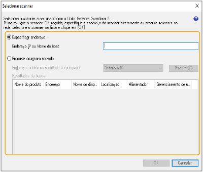 Clique em [Especificar endereço] e introduza o endereço IP ou o nome do anfitrião da máquina na caixa de texto [Endereço IP ou Nome do host].