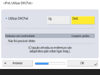 Se carregar em <Desligado> para <Utilizar IPv4> e <Utilizar IPv6>, e depois em <OK>, ignore as programações de rede e avance para o Passo 9.