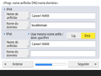 Se as programações de IPv4 e de IPv6 forem iguais, carregue em <Ligado> for <Usar mesmo nome anfitr./dom. que IPv4>.