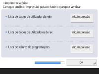 Carregue em <Inic. impressão> para o relatório que pretende imprimir.
