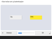 Para utilizar autenticação através do teclado numérico apenas no ecrã de início de sessão, carregue em <Ligado> e carregue em <OK>.