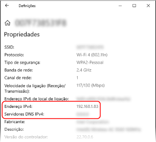 Em [Propriedades], veja o endereço IP e o servidor DNS.