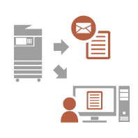 De exemplu, când trimiteți un document la adresa de e-mail a unui client ca fișier PDF, un utilizator poate apăsa opțiunea <Transmite către mine> afișată pe ecranul Caracteristici de bază pentru scanare și transmitere etc. pentru a trimite, de asemenea, fișierul PDF la propria adresă de e-mail. |