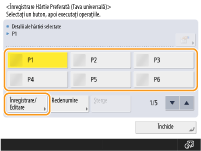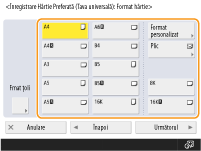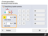 Dacă înregistrați formatul de hârtie pe care îl utilizați frecvent pe butoanele <S1> – <S4>, puteți să le apelați cu o singură atingere. Înregistrarea unui format liber de hârtie (format personalizat)