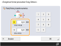 Specificați lungimea părții <X> și a părții <Y>. Apăsați <X> sau <Y> pentru a introduce lungimea fiecărei părți utilizând tastele numerice.