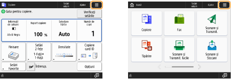 (Pagină de pornire). Ecranul <Acasă> afișează o listă cu butoanele de funcții și acționează ca o poartă de intrare către diferitele funcții. Elementele afișate în ecranul <Acasă>
