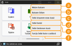 <Restricţionare afişare funcţie>: Selectați funcțiile sau aplicațiile MEAP care vor fi ascunse în ecranul <Acasă>.