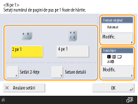 Selectați modul de aranjare a paginilor, dimensiunea documentului original și dimensiunea hârtiei pentru copiere.