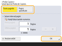 Selectaţi paginile pentru proba de copiere şi apăsaţi <OK>.