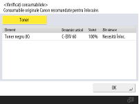 Puteți să verificați cantitatea de consumabile disponibile din IU la distanță. Verificarea stării aparatului