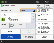 Pentru a verifica numărul total de destinaţii specificateNumărul total de destinaţii specificate este afişat în partea din dreapta-sus a ecranului. În acest fel puteţi să verificaţi dacă numărul de destinaţii este corect, înainte de trimitere.