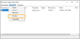 Dacă nu puteți găsi documentul de anulat, acesta este deja trimis la aparat. În acest caz, nu puteți să anulați imprimarea de la computer.