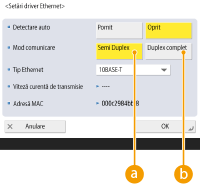 Selectați <10BASE-T>, <100BASE-TX> sau <1000BASE-T> în <Tip Ethernet>.
