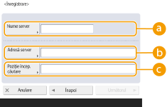 Când introduceți adresa IP, verificați dacă serverul DNS utilizabil acceptă doar căutarea înainte. Când serverul DNS acceptă doar căutarea înainte, apăsați <Nu utilizaţi> sau <Foloseşte> în <Informaţii autentificare> din etapa 4. Când selectați <Foloseşte(Aut. de securitate)>, confirmați că serverul DNS acceptă căutarea inversă.
