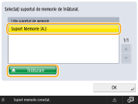 Selectați suportul de memorie pe care doriți să îl deconectați și apăsați <Înlăturare>.