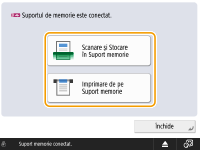 Atunci când suportul de memorie nu este recunoscut chiar dacă este conectat corect, aparatul poate fi setat să utilizeze driverul MEAP pentru dispozitivul de stocare externă USB. Setați <Folosiţi driver MEAP pt. dispoz. intrare USB> la <Oprit>. <Folosiţi driver MEAP pt.dispz.de stocare USB>