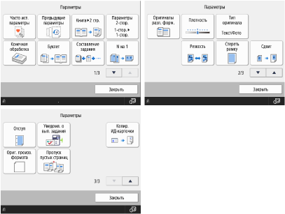 Кнопки быстрого вызова Параметры