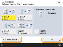Нажмите кнопку <OK>, чтобы применить параметры, или кнопку <Отмена парам.>, чтобы отменить внесенные изменения и восстановить предыдущие параметры.