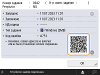 Когда в окне подробностей в журнале ошибок отображается QR-код, отсканируйте его мобильным устройством, таким как смартфон или планшет, чтобы открыть страницу Руководство пользователя для этого аппарата с инструкциями по устранению этой ошибки.