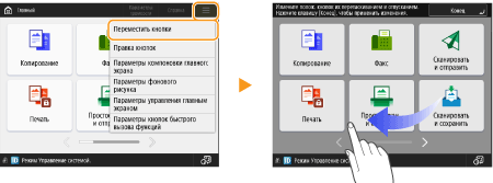 На экранах с перемещаемыми кнопками вы можете перетаскивать кнопки.