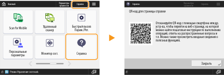 Нажмите <Справка>, чтобы отобразить QR-код. Отсканируйте этот QR-код мобильным устройством, таким как смартфон или планшет, чтобы перейти на страницу Руководство пользователя для этого аппарата.