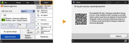 Если нажать <Справка> на основном экране функции факса или сканирования, отобразится QR-код для открытия страницы Руководство пользователя для функции факса или сканирования.