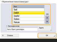 Если выбрать значение <Вкл.>, в нижней части сенсорного дисплея появится кнопка . Можно поменять текущий язык на другой, нажав кнопку <Перекл. языка/клавиатуры>, выбрав нужный язык из списка и нажав кнопку <OK>.