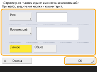 Чтобы зарегистрировать персональную кнопку, необходимо войти в систему аппарата с помощью управления аутентификацией для личных пространств. Настройка параметров управления аутентификацией для личных пространств