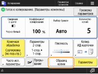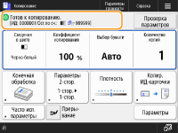 Отображает состояние параметров, таких как коэффициент копирования, формат бумаги и количество копий. Чтобы копирование было выполнено должным образом, обязательно проверяйте параметры. Если требуется изменить параметр, выберите необходимый элемент параметра.