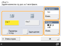 Чтобы сделать двухсторонние копии, а также чтобы сканировать двухсторонние оригиналы для получения односторонних копий, нажмите кнопку <Параметры 2-стор.>. Дополнительные сведения см. в разделе «2-стороннее копирование» шага 4 главы